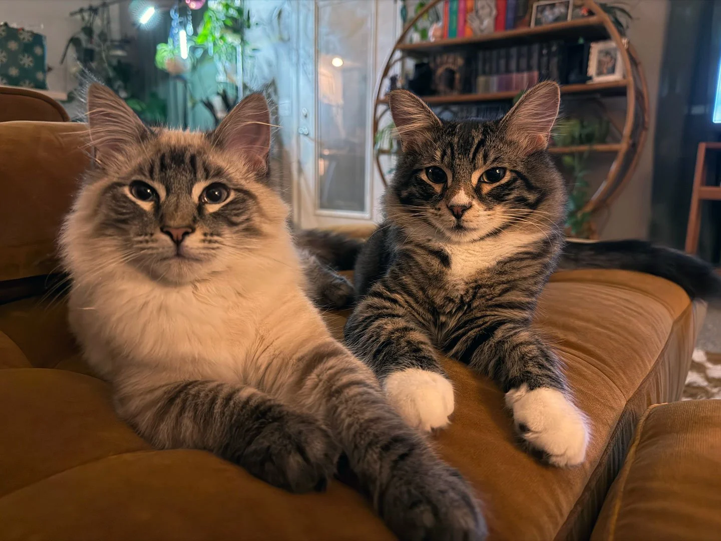 “At night, they’ll either sleep with me or with my children. Otherwise they can be found curled up comfortably and cozily together in their fluffy bed or at the top of the cat tower.”