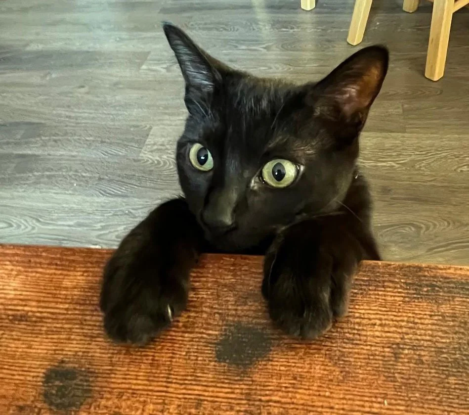 “We refer to her as our ‘goblin’ because she likes to take everything -- from hair clips and receipts to children’s toys -- and hide them throughout the house. We call them her ‘goblin nests’ when we find them! She definitely keeps life interesting and gives us a good chuckle when we discover her most recent antics. She really loves chasing after cat toy wands, lasers and cat springs, and although she doesn’t walk on our cat wheel, she loves swatting playfully at Bluejay’s ankles when she does.